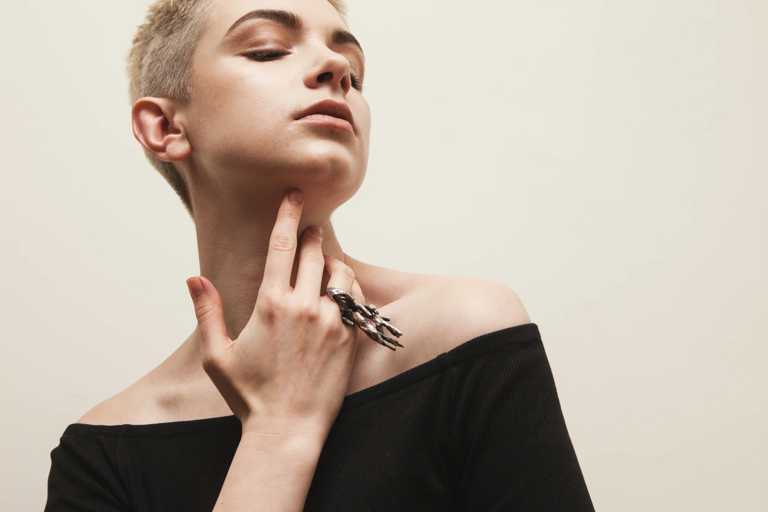 My jewellery explores the intrinsic characters of materials caught in fleeting forms. Silver cascades, drips and freezes. Crushed stones reveal the interiors of crystals rather than their polished faces. I exploit spontaneity and chance - each piece is a one-off, in the way it is constructed, the materials it is made from or in its finish.